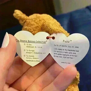 1999 Fuzz the bear, Ty beanie baby, retired with errors