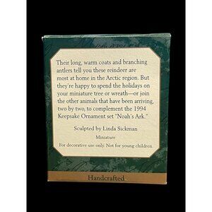 Celebrate the magic of the season with the 1999 Hallmark Keepsake Ornament Trusty Reindeer Noah's Ark Miniature. This charming ornament features the beloved reindeer character, bringing warmth and nostalgia to your holiday decor.