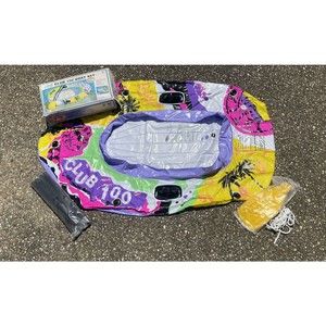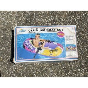 VINTAGE Intex The Wet Set Club 100 Boat Set Raft Featuring French Oars, Inflatable Floor, and all around grab line rope included.