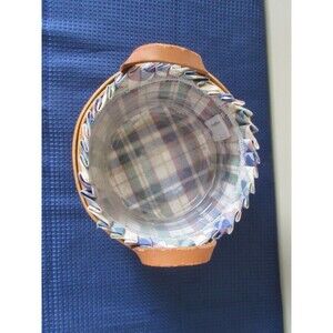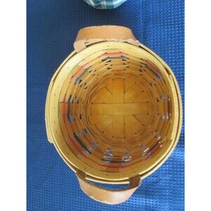 The 1999 Longaberger Woven Traditions Red/Green 7" Round Basket is a traditional and collectible decorative piece that features a small size, round shape, and woven design. Made of wood and fabric, this storage basket comes with a blue plaid insert, adding an extra element of charm to its natural finish. Perfect for all occasions, this Longaberger basket is a timeless and classic addition to any home décor collection.