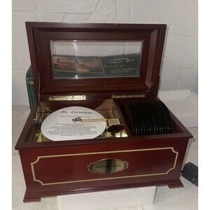 1999 Mr. Christmas Classic Wooden Music Box with 16 Discs! New!