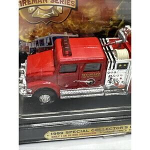 The 1999 Road Champs Special Collector’s Limited Edition New Orleans Fire Truck is a diecast model scaled at 1:43. This red fire department truck is a part of the Road Champs Fireman Series and is perfect for boys and girls who enjoy collecting toy vehicles. Manufactured in China in 1999, this special edition features unique details that make it a sought-after item for collectors of contemporary diecast vehicles.