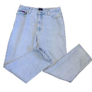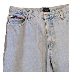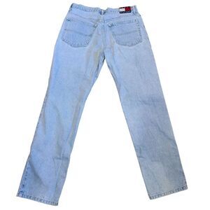 Vintage 1999 Tommy Hilfiger High Waisted, Tommy Jeans Women's Light Wash Blue Denim |Embroidered Flag Patch | 13/30 | Excellent USED Vintage Condition | Button and Zipper Closure | 5‐Pocket Jeans | Measurements Laying Flat and Unstretched: Waist 15" | Rise 11" | Inseam 29" | *Flaw, the care tag is faded | Please refer to the photos for the condition.