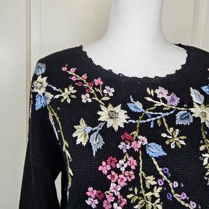 1999 VNT Heirloom Collectibles Black Embroidered & Beaded Floral Sweater Size M