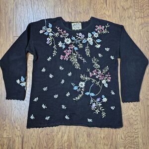1999 Vintage Heirloom Collectibles Black Embroidered & Beaded Floral Sweater.