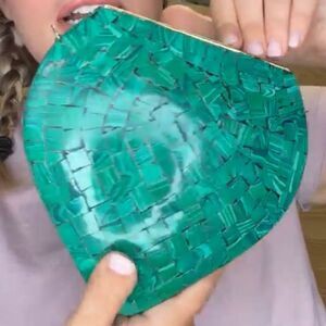 ~$199โMSRP - Ramla EVIL EYE HEART SHAPED Bag - EMERALD GREEN & BLUE Mosaic Tiles