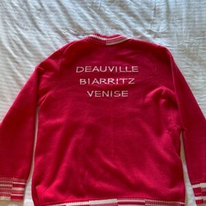 19P CHANEL PINK WHITE CC BUTTON DEAUVILLE BIARRITZ CASHMERE CARDIGAN SWEATER 38