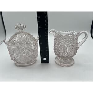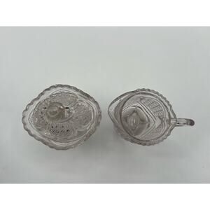 Pressed Early American Pattern Glass Cream & Sugar, “Austrian” Pattern Glass