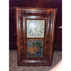 Stunning large 19th Century Eight Day & Forty Hour Mantel Clock with gorgeous original stai ed glass art includes original pendulum and key all wear shown above Measurements available upon request
