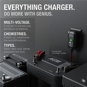 🧿Do more with Genius - Designed for 6-volt and 12-volt sealed lead-acid automotive, marine, RV, powersport, and deep-cycle batteries, including flooded, gel, AGM, SLA, VRLA and maintenance-free, plus lithium-ion batteries (lifepo4).
