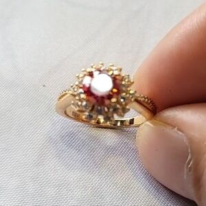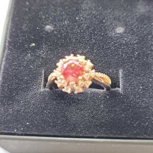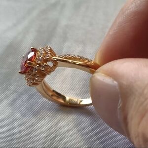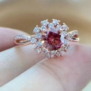 Red Moissanite Ring 1 Carat 6.5MM with GRA Certificate 100% - S925 Silver Side Stone Zircon Metal Stamp 925, Sterling