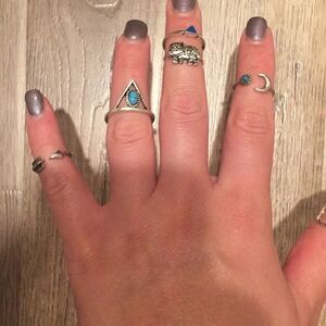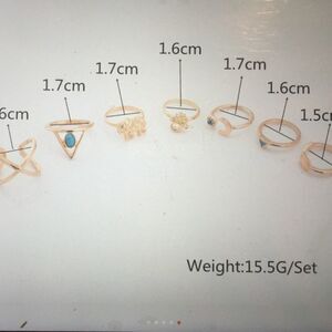 7 Pcs new in the bag ring set . You can use how ever u want . Some of the rings are adjustable.