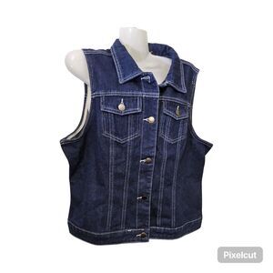 1NWOT Size Large Allegra K Flap Pocket Button Denim Jacket Vest