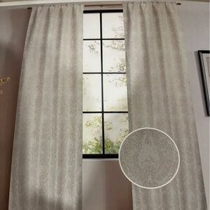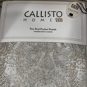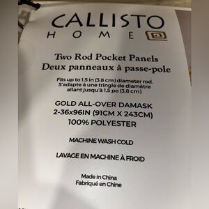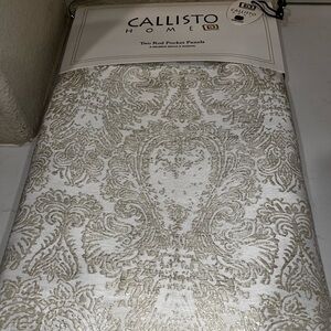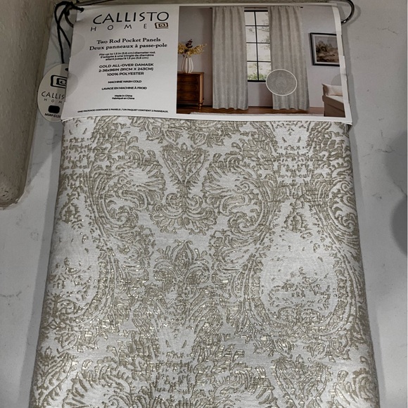 1-NWT CALLISTO HOME GOLD ALL OVER DAMASK CURTAINS SET OF 2 PANELS SIZE 36”x 96”