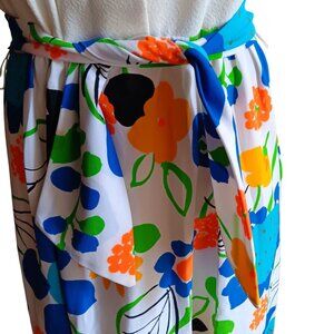 This timeless two-piece set captures the essence of vintage fashion. Featuring a crisp sleeveless button-up top paired with a vibrant floral maxi skirt, this ensemble exudes retro charm while offering graceful comfort. The colorful botanical design adds a touch of whimsy to an elegant silhouette, evoking a nostalgic nod to mid-20th-century style.