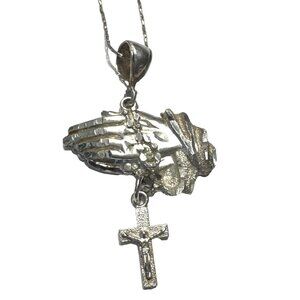 1OFAKIND Sterling Silver Praying Hands Pendant 24 " Chain