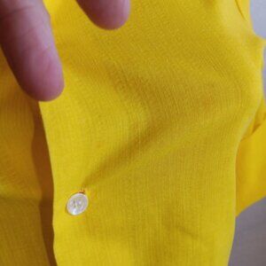 1Of1 Women's XS Vintage Yellow Button-Up Blouse Fold-Over 3/4 Sleeves Handmade