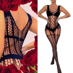 1-Piece l Black Garter l Body Stocking l Feels Good On! l High-Stretch l New