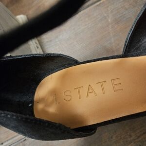 1.STATE BLK.SUEDE SANDALS.PEEP TOE,CUTOUTS,ANKLE STRAP.Sz.10.Rear Zip.STACK HEEL