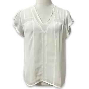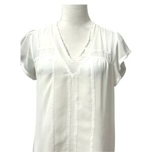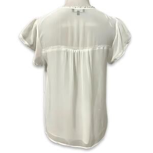 1.STATE Blouse Flutter Sleeves V-Neck Sheer Breathable Lace Trim White W S NWOT