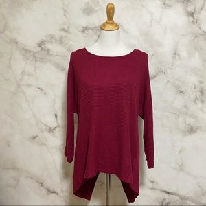 1.STATE Deep Rouge Knot Back Waffle Knit Top