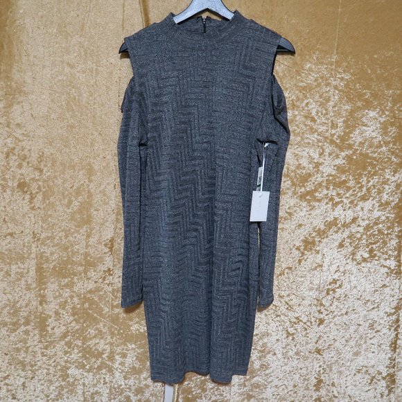 You will be fifty shades of fabulous in this gray cold shoulder. It has a beautiful textured pattern and a zipper closure in the back.