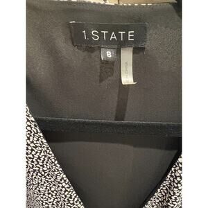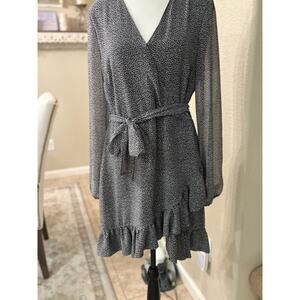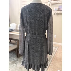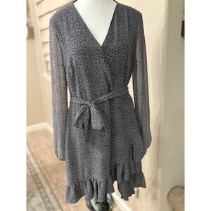 1.STATE Long Sleeve Ruffle Hem Wrap Dress Black/White Dot Pattern Size 8