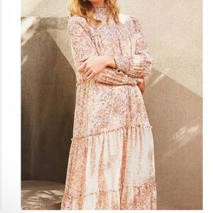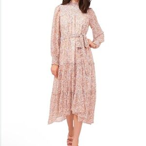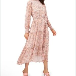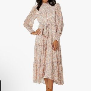 1.STATE Long Sleeve Smocked Neck and Yoke Midi Dress Sweet Blooms Sz M $129
