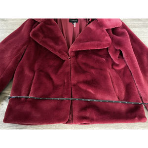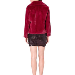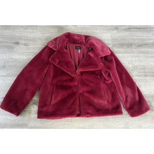 1.STATE Modern Cropped Faux-Mink Fur Soft Collared Chubby Teddy Jacket Dark Pink