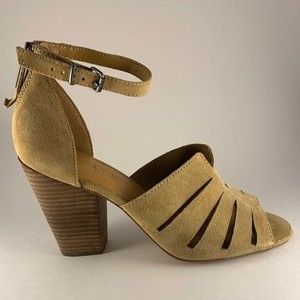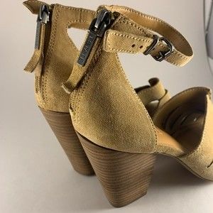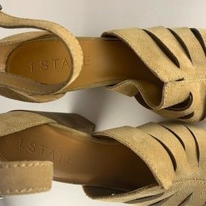 1.STATE Never worn tan suede zip back heeled sandals, size 10