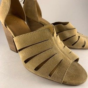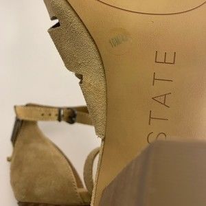 1.STATE Never worn tan suede zip back heeled sandals. Nallay style. Comfortable wide heel. Cutout suede sandal with stacked block heel, size 10