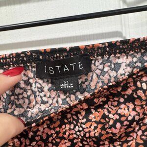 Add a touch of elegance to your wardrobe with this beautiful 1.STATE Printed Midi Skirt set. This set includes two skirts in size XL, featuring a colorful floral pattern on a black background. The A-line style and midi length make these skirts versatile and perfect for any occasion.