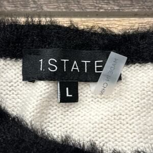 1.STATE Sequin Sleeve Stripe Cotton Blend Crewneck Sweater Cream Size L