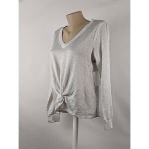 1.STATE Sweater Trendy Classic Metallic Twist Front Top Soft Ecru 0X Lightweight