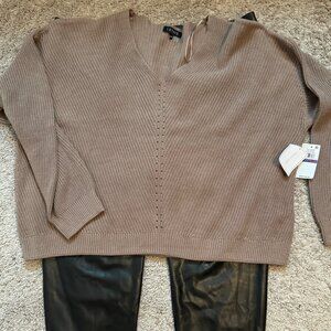 1.STATE Sweater XXL (NWT) + Black Faux Leather Leggings 2X Bundle Chic Neutral