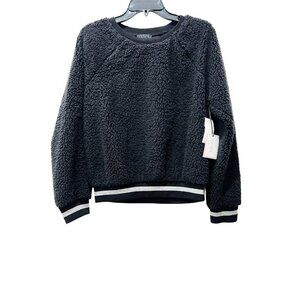 1.STATE Teddy Long Sleeve Crewneck Pullover, Size Medium - Black