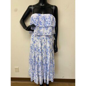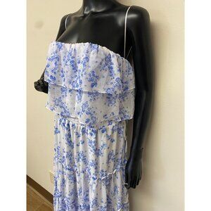 1.STATE Women's Floral Print Strapless Ruffle Tiered Midi Dress Size XL NWT