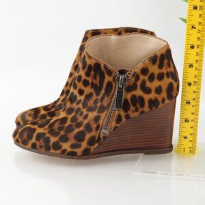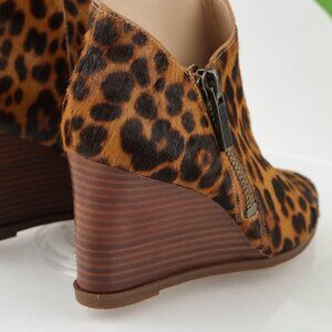 1.STATE Womens Kaleb Boot Size 7 Brown Pony Calf Hair Leopard Wedge Zip Bootie