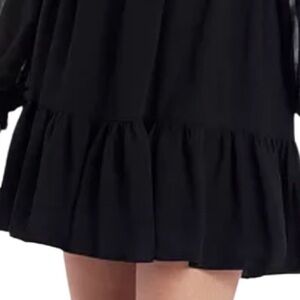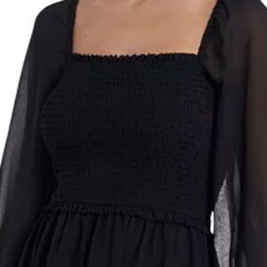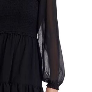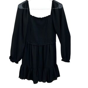 1.STATE Women's Mini Black Smocked Ruffle Hem Long Sheer Sleeve Dress Goth NWOT