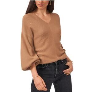 1.STATE Women's Rib-Knit Bubble Sleeve Long Sleeve Sweater Size L