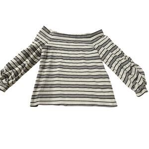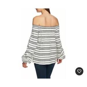 1.STATE Womens Ruched Sleeve Off the Shoulder Blouse, White - XL