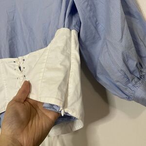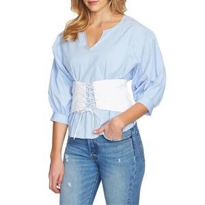 1.STATE blue pinstripe corset cinched long sleeve blouse top size Medium