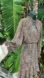 This pretty dress starts with a sheer, leopard print chiffon over. There is a slight ruffle at the bottom of those fuller sleeves at the neckline, and a wide ruffled Hilow hem. Although the over chiffon is sheer, or semi sheer dresses, lined to the knees and an excellent condition. The fabric is a polyester chiffon.