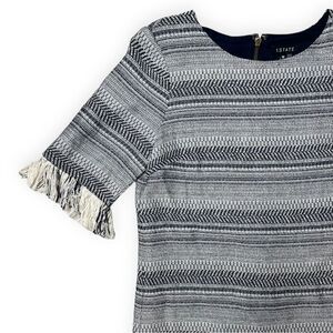 1.STATE Cotton Rustic Tweed Navy and White Fringe Dress