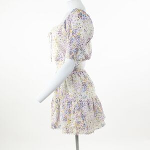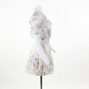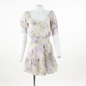 Smocked details add an extra textural element to an airy cotton voile minidress in a pastel floral pattern. Square neck Elbow-length sleeves with smocked cuffs Lined