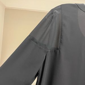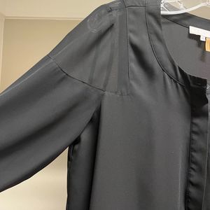 You'll love this modern style of 1. STATE Long Sleeve Flattering Blouse. Pull-on design with partial button closure, sheer shoulders, one button cuffs, and curved hemline in a regular fit. Beautifully made. Excellent preowned condition. No signs of wear.