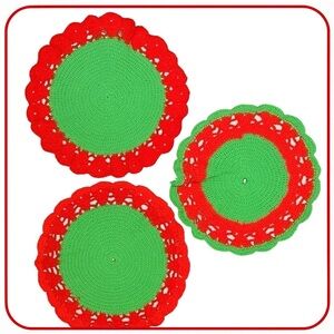 1Set of 3 Handmade Christmas Doilies | Green & Red Crochet Placemats | NEW