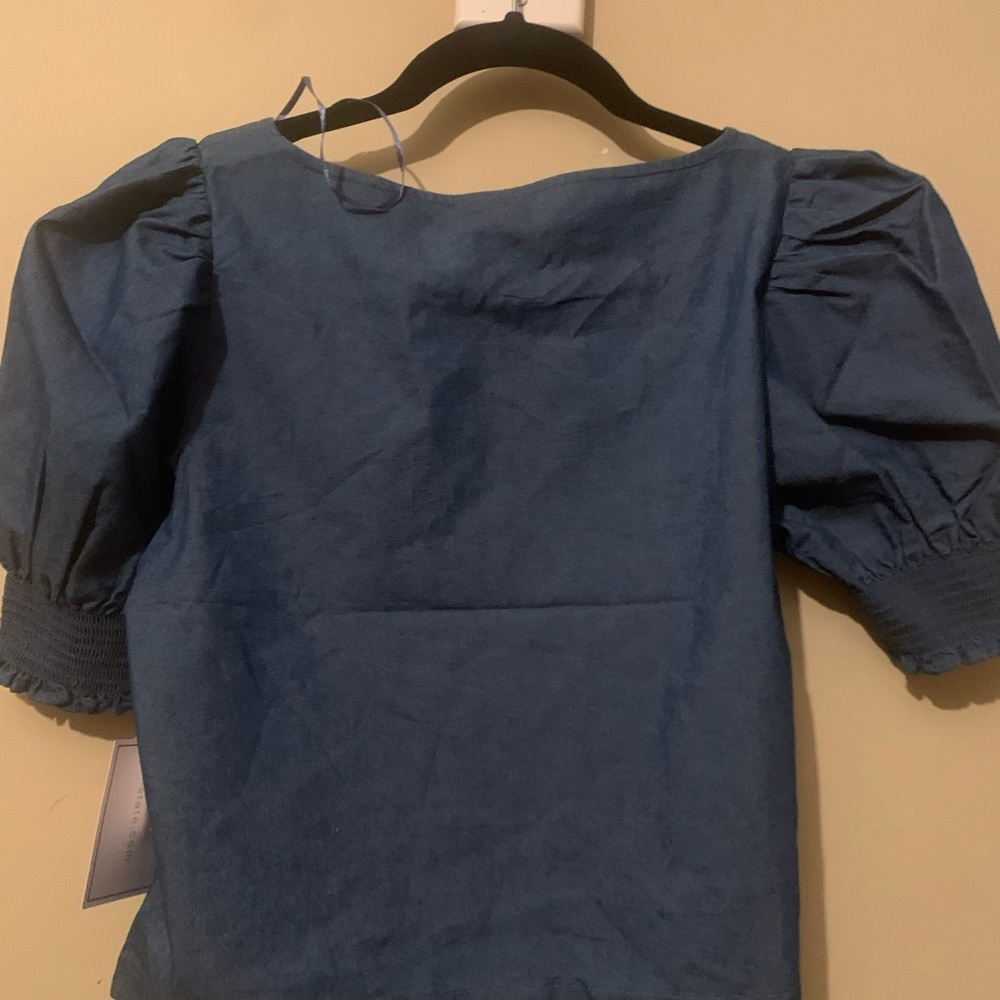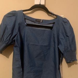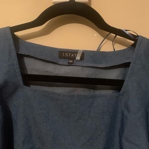 NWT 1.state size XXS crop top. PTP is approximately 17” and length from shoulder to bottom is also 17” approximately. Beautiful denim blue.
