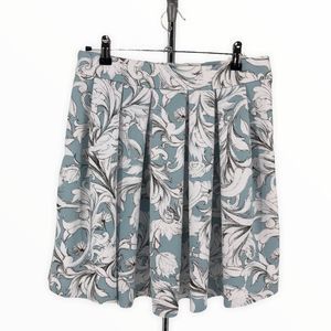 1. State Aqua White Drawn Floral Pleated Skater Skirt Banded Waist size M