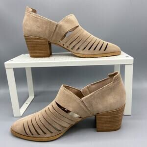 1.State Arnet Suede Leather Bootie Size 8.5 Taupe Beige Cut Out Side Zip Neutral